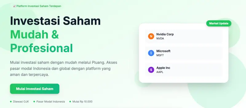 Mulai investasi saham dengan mudah melalui Pluang. Akses pasar modal Indonesia dan global dengan platform yang aman dan terpercaya.